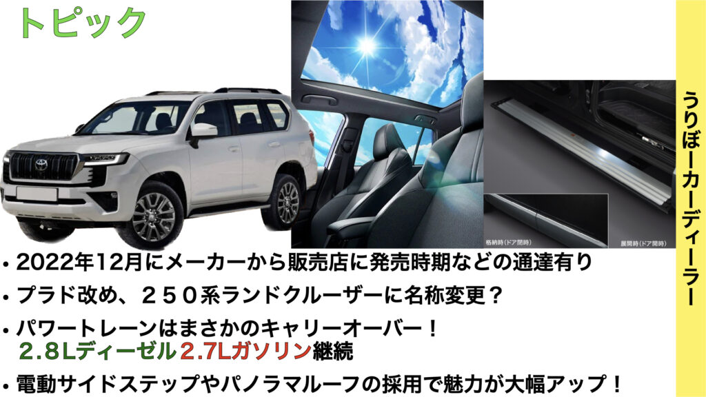 私も驚きなのですがどうやら次期プラドは”ランドクルーザー250”といった名称になるようです!