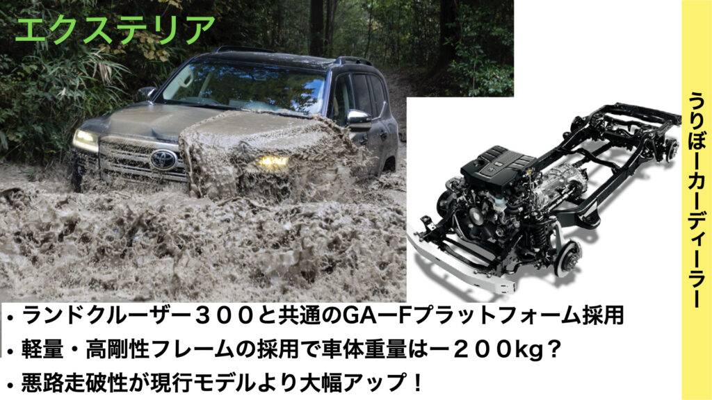 サイズUPに伴いランクル300と共通のGA-Fプラットフォームを採用。