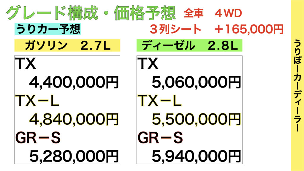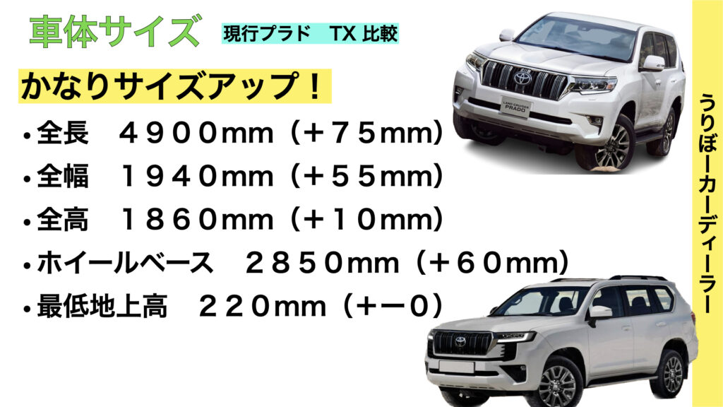 現行プラドから乗り換えを検討している方もサイズが変わるとなるとお財布にも痛いですね、、、