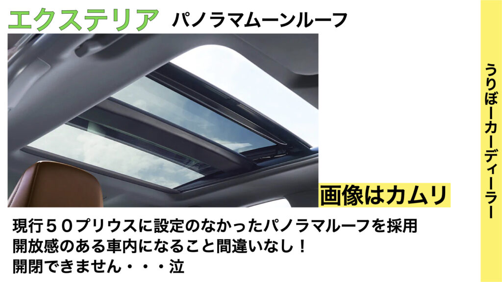 私も新型プリウスの実車にてパノラマルーフがついた車両を見させていただいたのですが