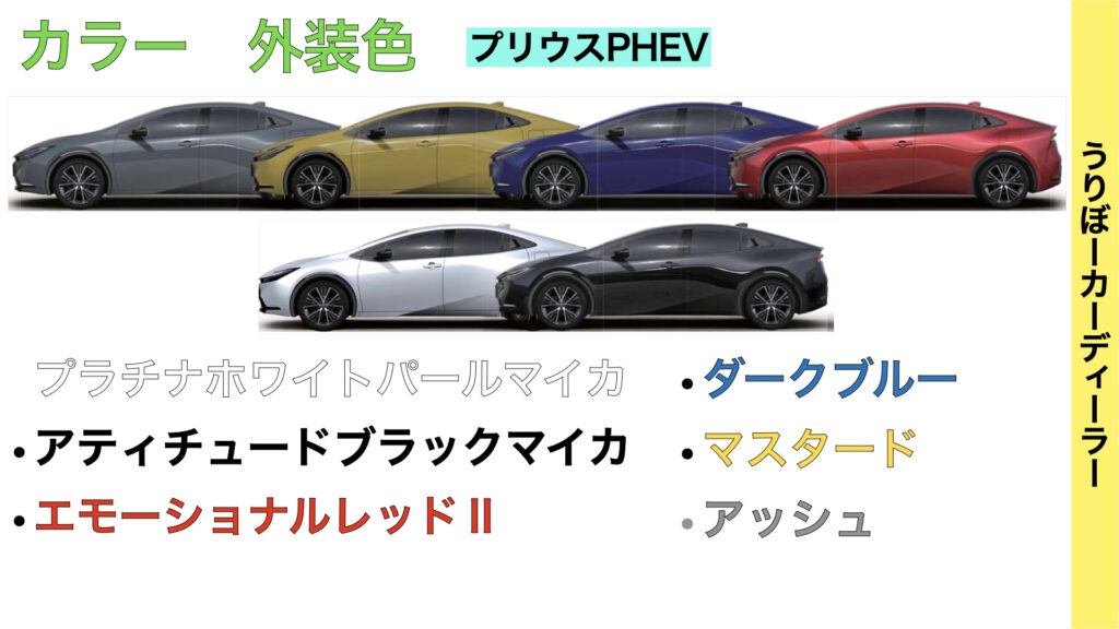 ボディーカラーはHEVと一緒ですね。ハリアーPHEVみたいに専用色とかでたら嬉しいですね!