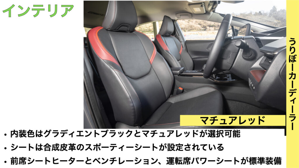 PHEVは上位グレードZのみの設定ですのでシート表皮は合成皮革です。