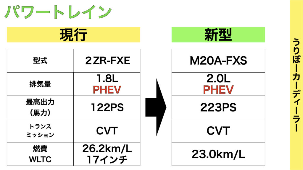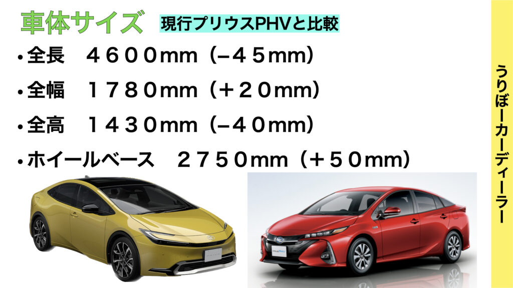 画像では先代のPHEVと比較です。全幅が広がり、全高が下がったためか私個人的には大きくなったように感じました!