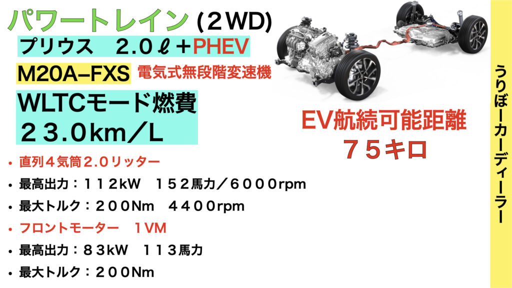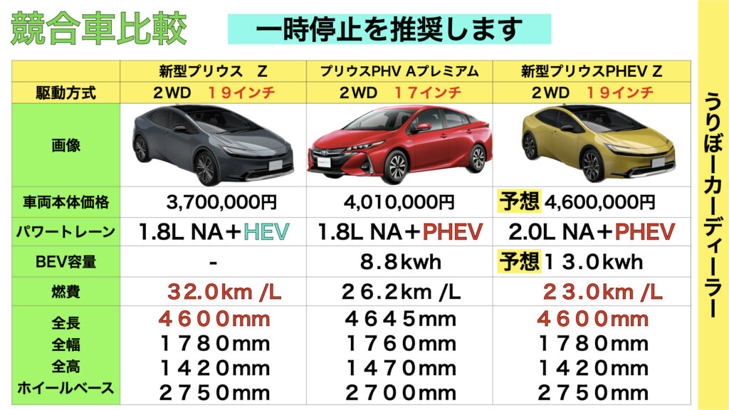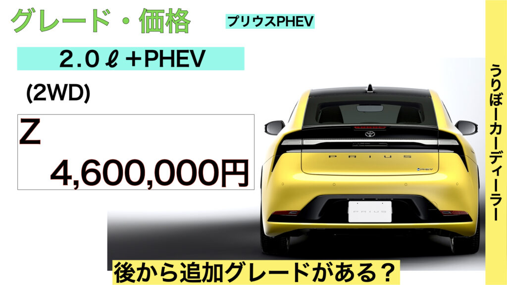 通常HEVにプラス90万円、現行PHEVにプラス約60万円と大幅に価格が上昇しています。