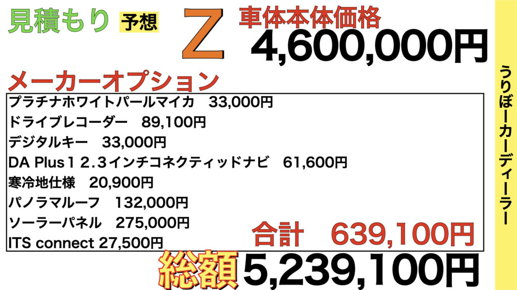 ただ噂によるとソーラーパネルのオプション選択すると納期がいつになるか分からないんだとか…