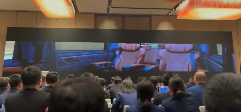 シート形状からみるとエグゼクティブラウンジっぽいです。リヤシートにはそれぞれに小さなディスプレイが付いてます。ドアトリムの加飾も豪華ですね、、、