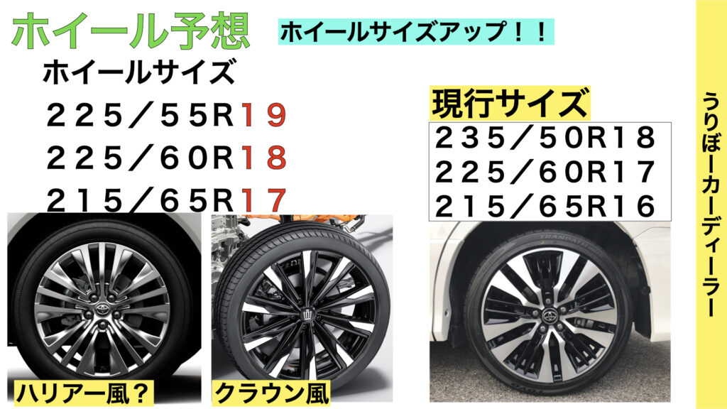 ヴェルファイアではレスオプション設定でホイールも大きく設定されてますので価格も高い予想です。