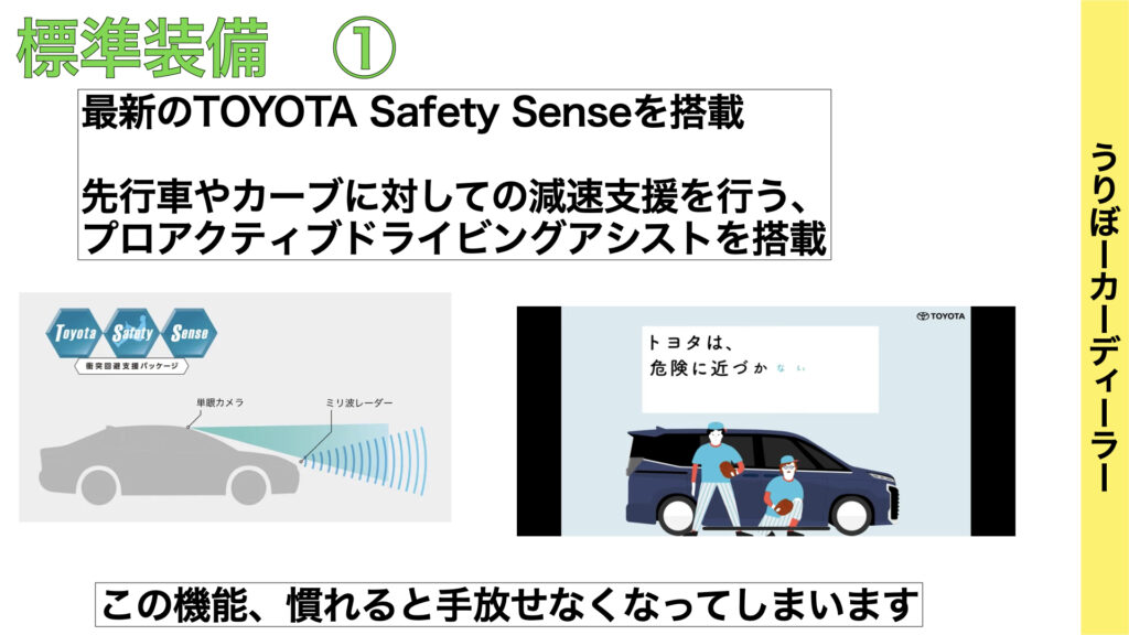 最新のトヨタの先進安全装備を搭載するようになりますね。先ほどのインテリアの画像にアドバンスドドライブ用のカメラっぽいのもありましたね。