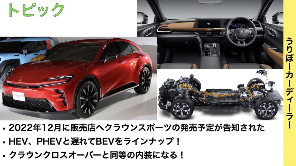 またクラウンスポーツには改良時に追加でBEVが設定されると予想します。