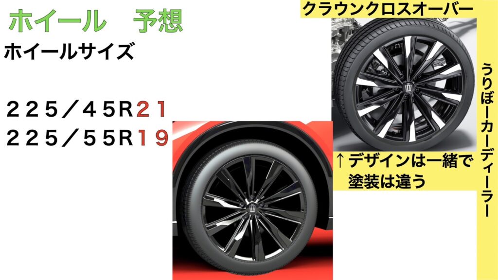 ホイールはクラウンクロスオーバーと同サイズの予想です。
