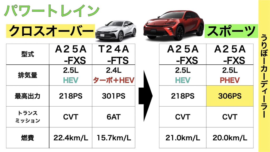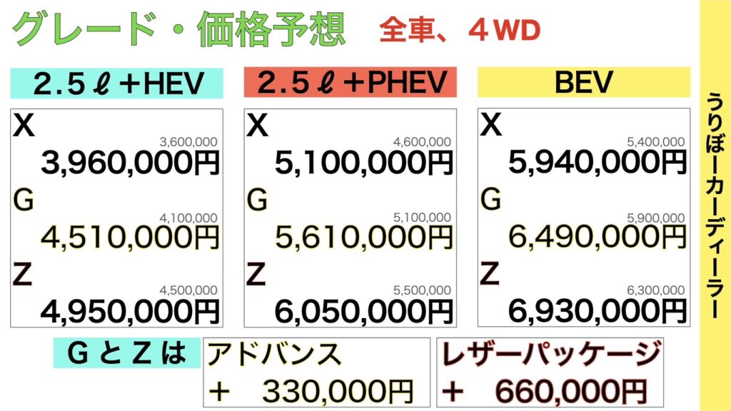 クロスオーバー同様に熟成された2.5Lハイブリッドは継続採用、PHEVが追加されると予想します。